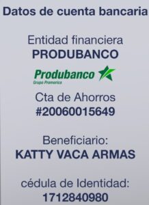 Formulario persona natural Firma electrónica Firma electrónica para: Persona natural con RUC. (Para emisión de facturas electrónicas) Persona natural sin RUC. (Para funcionarios o trámites) Vigencia de la Firma 30 días $ 10 1 año $ 22 2 años $ 34 3 años $ 46 4 años $ 56 Número de cédula del titular Nombres y Apellidos del titular de la FIRMA ELECTRONICA Dirección de domicilio Correo electrónico del titular de la firma Celular Quien es tu Asesor? Angel Katty José Luis Marha WEB institucional Otro Rita Sube la foto del anverso (la cara , el frente) de tu cédula Recuerda debes subir la foto del anverso (la cara , el frente) de tu cédula, este paso es parte fundamental del proceso. Cedula del titular Anverso y Reverso (JPG, PNG, PDF) Sube la foto del reverso (atrás, contra cara) de tu cédula. recuerda necesitamos la foto del reverso (atrás, contra cara) de tu cedula, pues es parte fundamental del proceso Reverso cédula (JPG, PNG) si no tienes ruc omite este paso VIDEO (mayores de 64 años) Selfie con cédula en su mano, sin lentes ni mascarillas (formato jpg, png, pdf) Sube tu comprobante de depósito Si adquiriste tu combo sube la factura VOUCHER de depósito o transferencia a la cuenta: Produbanco Cta. Ahorros Nro. 20060015649 Katty vaca Armas, Cédula 1712840980 ENVIAR